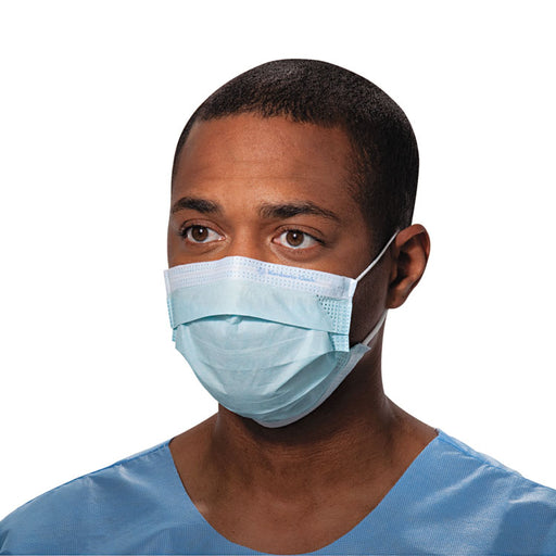 Pleat-style procedure mask with ear loops. Blue. Ten boxes per carton—50 masks per box. Size Group: One Size.