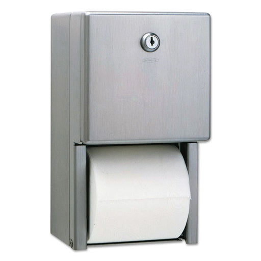 Holds two standard rolls up to 5 1/4". Extra roll automatically drops into place when bottom roll is depleted. Reduces maintenance time and need fo...