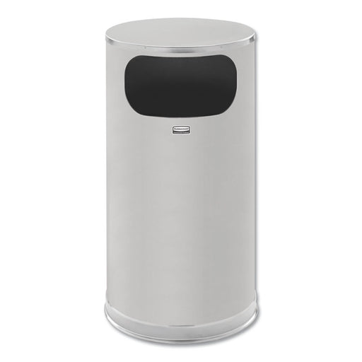 Trash can offers functional litter control in an elegant design. It has an open top with a vinyl trimmed disposal opening. Made of fire-safe steel....