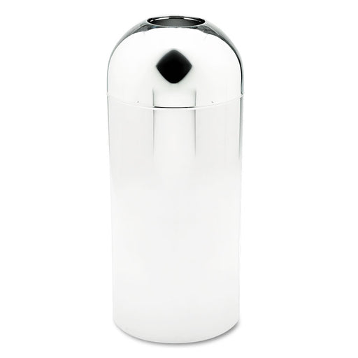 15 gallon dome receptacle with an open top and galvanized steel liner. Wide stainless steel bottom edge is rolled under to protect floors. 6" dia. ...