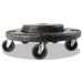 Brute Quiet Dolly, 250 lb Capacity, 18.25 dia. x 6.63h, Black. Precision Engineered for quiet operation. Non-marking red casters to easily identify traditional dollies from quiet dollies. Eliminates 88% of traditional dolly noise across both smooth and uneven surfaces. Twist lock feature secures containers to the dolly. Color(s): Black; Dolly Size: 18.25" dia x 6.63"; Capacity (Weight): 250 lbs; For Use With: Brute® 32-Gallon, 44-Gallon, and 55-Gallon Round Waste Containers.