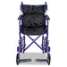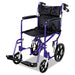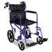 Excel Deluxe Aluminum Transport Wheelchair, 300 lb Capacity, 19 x 16 Seat. Ideal for travel--weighs just 22 lbs. Back folds down for easy storage and transport. Loop brakes and seatbelt for safety. Full-length padded armrests. Convenient swing-away, detachable footrests. 12" wheels with dual-sealed bearings for stability. Black nylon upholstery with blue powder coated frame. Capacity (Weight): 300 lbs; Base/Frame Material(s): Aluminum; Seat Width: 19"; Seat Depth: 16".