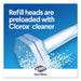 - Preloaded with Clorox® cleaner, these disposable scrubbing pads deep clean and remove stains while eliminating germs to make your toilet bowl feel like new.