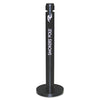 Smoker's Pole, Round, Steel, 0.9 gal, Silver. The Rubbermaid Commercial Aluminum Smokers Pole reduces obstruction in high-traffic areas. The round, vertical design is simple, yet sure to stand out in the vicinity for your patrons cigarette disposal needs. This weather-resistant ash tray features a UV-stabilized Uni-Koat powder-coated finish with a classic black color, making it suitable for a variety of outdoor environments. Made of durable aluminum, this cigarette bin is fire safe. Its chamber restricts oxygen flow, quickly extinguishing discarded smoking items, while its recessed extinguishing screen prevents extra ashes from dropping to the ground. These Smokers Poles feature simple mechanisms for emptying and maintenance, and no tools are required. A quick release push button detaches around the pole's midpoint for minimal bending. With a unique design and clean appearance that is covered to conceal waste, your patrons can easily deposit their cigarettes. Capacity (Volume): 0.9 gal; Material(s): Steel; Color(s): Silver; Finish: Powder Coat.
