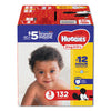 Snug and Dry Diapers, Size 6, 35 lbs min, 80/Pack. Huggies® Snug & Dry Diapers provide your baby with up to 12 hours of protection, day or night. Huggies® Leak & Lock® System and quilted liner help absorb messes, while helping separate wetness from baby's skin to keep baby dry and happy. A wetness indicator changes color to let you know when it's time for a diaper change. These disposable diapers are hypoallergenic, latex-free, fragrance-free, and free of elemental chlorine bleaching. They also feature fun, exclusive Disney designs. Diaper Style: Disposable; Diaper Size: 6; Baby Weight Range Min [Min]: 35 lbs; Latex Free: Yes.