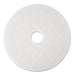 Super Polish Floor Pad 4100, 20" Diameter, White, 5/Carton. 3M™ White Super Polish Pad 4100 is used for light cleaning under automatic scrubbers and removes soil and scuff marks with minimal dulling of finish. Uniform distribution of fine cleaning particles throughout the pad’s fibers, not just on the surface, distinguishes it from much of the competition. Durable, conformable polyester fibers provide maximum pad-to-floor contact, and open construction resists loading and clogging. For use with rotary and automatic floor machines running at low speed (175-600 rpm). Use for light daily cleaning, spray buffing, and dry buffing soft finishes. This polishing pad is also used on wood floors. The pad is reversible. Application: Buffing; Diameter: 20"; Height: 1"; Color(s): White.