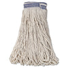 Universal Headband Mop Heads, Cotton, White, 16 oz, 1-in. Blue Headband, 12/CT