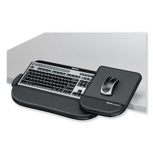 Fellowes® Professional Series Premier Keyboard Tray with Comfort-Lift™ system lets you slide mouse platform left or right over keyboard numeric pad...