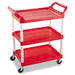 Service Cart, 200-lb Capacity, Three-Shelf, 18.63w x 33.63d x 37.75h, Red