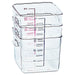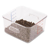 SpaceSaver Square Containers, 2 qt, 8.8 x 8.75 x 2.7, Clear, Plastic. The Rubbermaid Commercial Carb-X Space Saving Food Storage Container features graduated measurements on the side to make it easy to measure contents. The square shape saves space while the break-resistant polycarbonate provides durability and strength. Food Container Type: Storage/Tote Box; Material(s): Polycarbonate; Capacity (Volume): 2 qt; Color(s): Clear.