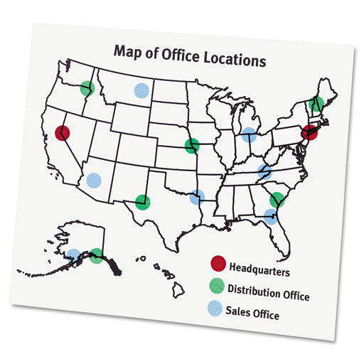Removable see-through color dots are designed to help you find your way. Their translucent color allows you to affix them to maps, reports, ledger ...