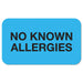 Medical Labels, NO KNOWN ALLERGIES, 0.88 x 1.5, Light Blue, 250/Roll