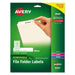 Removable File Folder Labels with Sure Feed Technology, 0.66 x 3.44, White, 30/Sheet, 25 Sheets/Pack. Make quick changes and reuse your file folders with our removable file folder labels. The removable adhesive helps labels stick, stay and remove cleanly when you need a change. Labels feature an eye-catching color strip at the top to make it easier to find just the folder you're looking for. The assorted colors make them great for color coding too. Write by hand or use our free templates from Avery® Design & Print to customize and print your labels for a professional look. For a truly versatile label, it's hard to beat these file folder labels. 1/3 Cut Top Tab—8.5 x 11 sheets. Shape: Rectangular; Label Size - text: 0.66 x 3.44; Label Color(s): White; Color Family: White.