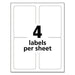 White Shipping Labels-Bulk Packs, Inkjet/Laser Printers, 3.5 x 5, White, 4/Sheet, 250 Sheets/Box. Create professional-looking labels quickly. Bright white labels for sharper print quality are perfect for creating labels for shipping and organizing. 250 sheet boxes; ideal for large labeling projects. Easy to customize with free templates and designs at Avery® Design & Print at avery.com/print. 8 1/2 x 11 sheets for laser or inkjet printers. This product was made from wood that came from a certified managed forest. Sure Feed™—Designed for reliable printer feed. Shape: Rectangular; Label Size - text: 3.5 x 5; Label Color(s): White; Color Family: White.