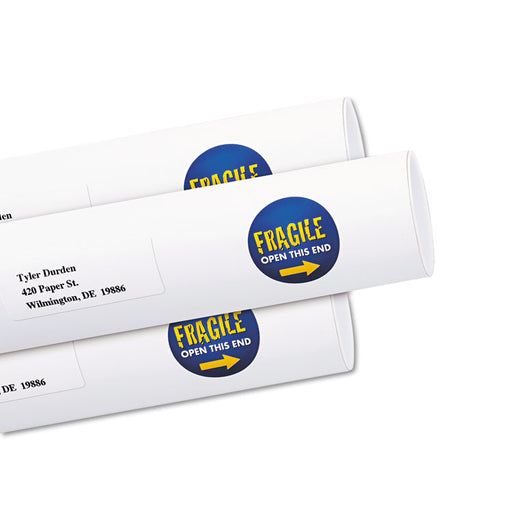 Stick to most surfaces. Not for use in printers or copiers. 4 x 6 sheets. Shape: Round; Label Size - text: 0.75" dia.; Label Color(s): White; Color...