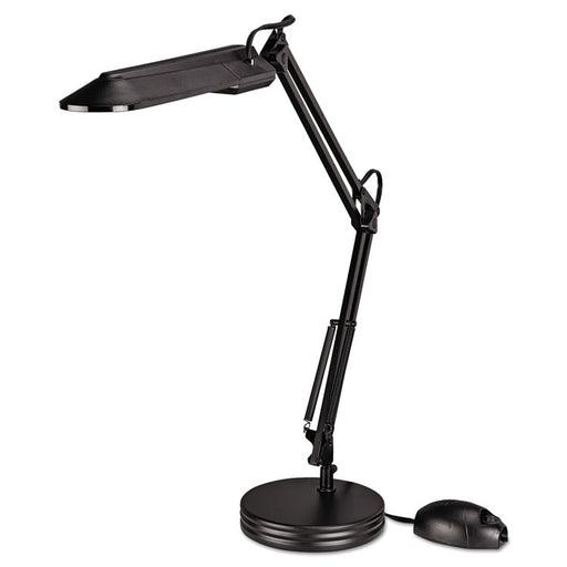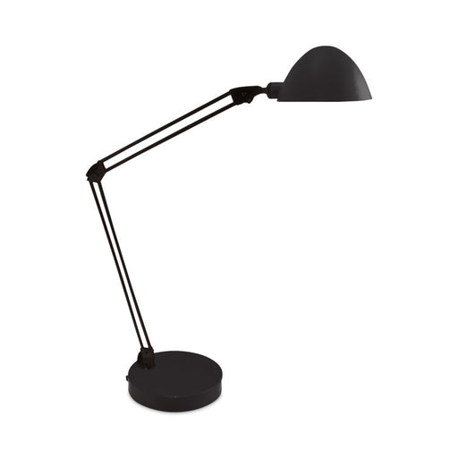 Contemporary lamp uses energy-saving LED light. Adjustable head and arm lets you direct light onto the task at hand. Base Color: Black; Plug Type: ...