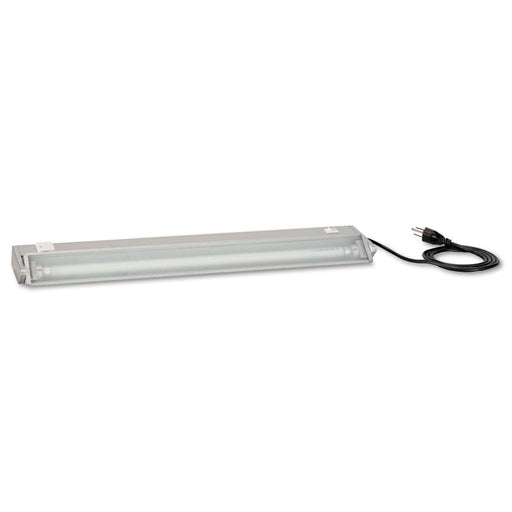 Energy efficient under cabinet light uses 15W bulb. White all-steel housing includes a convenience outlet for other devices. Mounting hardware incl...