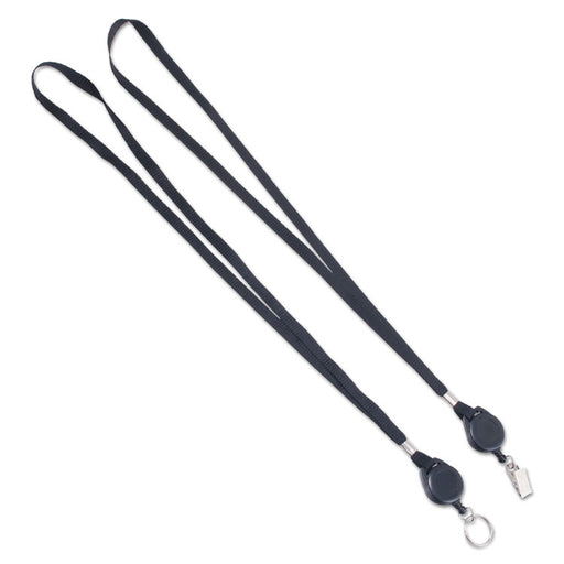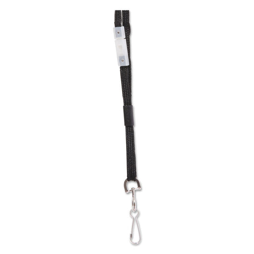 Soft cotton/nylon lanyard features a metal fastener to attach keys, name badges or cards. Fastener Style: Clip; Lanyard Color(s): Black; Length: 36...