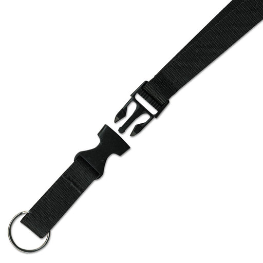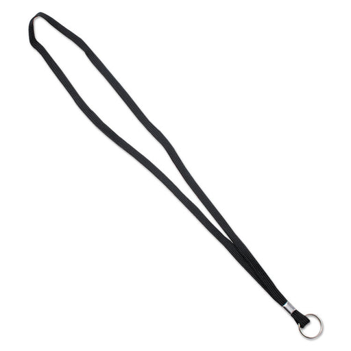 Soft cotton/nylon lanyard features a metal fastener to attach keys, name badges or cards. Fastener Style: Ring; Lanyard Color(s): Black; Length: 36...