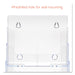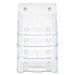 4-Compartment DocuHolder, Magazine Size, 9.38w x 7d x 13.63h, Clear. Compact, clear plastic holder. Tiered design offers better visibility and space efficiency. Design is ideal for financial institutions, government buildings, lobbies, libraries and more. Use on countertop or wall-mount (mounting hardware not included). Large 4-Tiered—For magazines, brochures and catalogs up to 1" capacity. Color: Clear; Color Family: Clear; Overall Width: 9.38"; Overall Depth: 7".