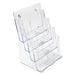 4-Compartment DocuHolder, Booklet Size, 6.88w x 6.25d x 10h, ClearClear plastic 3 compartment magazine holder.