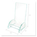 Euro-Style DocuHolder, Leaflet Size, 4.5w x 4.5d x 7.88h, Green Tinted. Sleek design with green-tinted edges has the look of a high-end glass. Use where image and value are equally important. Made from durable, lightweight acrylic. Leaflet Size—Holds 4" wide x 2 1/2" deep leaflets. Color: Green Tinted; Color Family: Green; Overall Width: 4.5"; Overall Depth: 4.5".