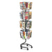 Wire Rotary Display Racks, 32 Compartments, 15w x 15d x 60h, Charcoal. Clean, open-wire look allows for a full-front view of literature. Ideal for brochures, pamphlets, resources and magazines. Layers rotate independently for easy literature selection. Five dual-wheel casters (two locking). Disassembles and reassembles quickly, ideal for trade shows. Welded wire construction with a powder coated finish. Brochure Size—4 1/2w x 1d compartments display brochures, pamphlets and other literature. Color: Charcoal; Color Family: Gray; Overall Width: 15"; Overall Depth: 15".