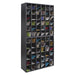 Wood Mail Sorter with Adjustable Dividers, Stackable, 36 Compartments, 33.75 x 12 x 32.75, Black. Study sorter made of 3/4" compressed wood with adjustable hardboard dividers. Stacks up to two high. Black plastic molding accent doubles as a label holder (labels included). Durable laminate finish complements any setting. Solid fiberboard back provides stability. 36 Compartments. Literature Sorter Type: Open Front Mail; Stackable; Number of Compartments: 36; Compartment Size: 4 7/8 x 11 3/4 x 5; Material(s): Compressed Wood.