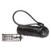 - Self-coiling cable stretches from 3 inches to 6 feet.