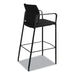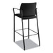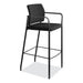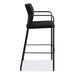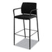 Accommodate Series Café Stool, Supports up to 300 lbs., Black Seat/Black Back, Black Base. Lightweight, maneuverable frame is ideal for multi-purpose spaces, cafes and common areas. Seat cushion is made of high-density molded foam that is designed to last longer. Fixed arms provide additional upper body support. Recommended Applications: General Office & Task; Seat Color: Black; Back Color: Black; Color Family: Black.