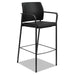 Accommodate Series Café Stool, Supports up to 300 lbs., Black Seat/Black Back, Black Base. Lightweight, maneuverable frame is ideal for multi-purpose spaces, cafes and common areas. Seat cushion is made of high-density molded foam that is designed to last longer. Fixed arms provide additional upper body support. Recommended Applications: General Office & Task; Seat Color: Black; Back Color: Black; Color Family: Black.
