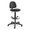 Precision Extended-Height Swivel Stool, Adjustable Footring, Supports 250 lb, 23" to 33" Seat Height, Black Vinyl, Black Base. Economical drafting-height chair features durable upholstery and adjustable footring to support legs and help ease pressure points. One-touch pneumatic seat height control, manual back height and depth adjustment and 4" deep seat cushions for comfort and to help ease pressure points. Five-star, 25" base has dual hooded casters. Vinyl. Recommended Applications: Drafting, Warehouse & Industrial—Stools; Seat Color: Black; Back Color: Black; Color Family: Black.