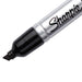 King Size Permanent Marker, Broad Chisel Tip, Black, 4/Pack. Designed for industrial users, Sharpie Professional King Size Permanent Markers write on most surfaces including wet and oily surfaces. The rugged plastic barrel and sturdy felt tip make this marker ideal for the toughest marking jobs. Featuring an extra-large ink supply, this permanent marker is long lasting and withstands heavy use. Marker Ink Type: Permanent; Marker Tip Type: Chisel; Marker Tip Size (text): Broad; Marker Color(s): Black.