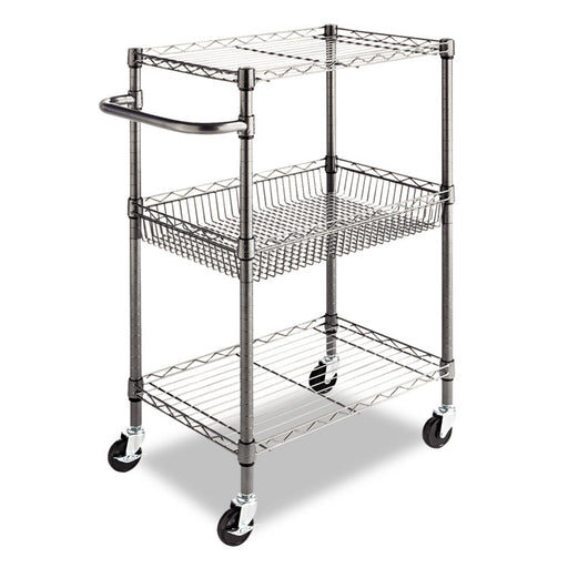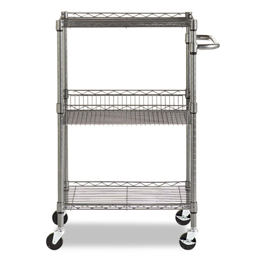 Durable resin construction helps create a strong, two-shelf utility cart. Molded-in handle allows for easy steering on the go. Convenient swivel ca...