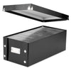 Media Storage Box, Holds 120 Slim/60 Standard Cases. Organize your media with this desktop storage box. Sturdy industrial snaps make it quick to assemble and keep it together securely. Use the card holder to label the contents. Leather-like PVC laminate exterior and silver accents give the storage box an attractive, stylish appearance. Double-Wide Storage Box. Storage Type: Box; Media Stored: CD; Media Quantity Held: 120 Slim/60 Standard Cases; Material(s): Laminated.