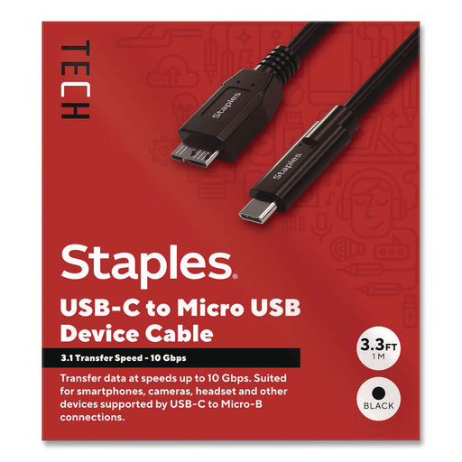 Reliably charge or sync personal electronic devices - like smartphones, tablets, cameras, gaming headsets and more - with the Staples TECH USB-C to...