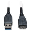 USB 3.0 SuperSpeed Device Cable (A to Micro-B M/M), 3 ft., Blue. Brings significant performance enhancements to the ubiquitous USB standard, while remaining compatible with the billions of USB enabled devices. SuperSpeed USB will deliver ten times the data transfer rate of high-speed USB, up to 5 Gbps, as well as improved power efficiency. USB 3.0 utilizes a bi-directional data interface rather than USB 2.0's half-duplex arrangement, where data can only flow in one direction at a time, giving a ten-fold increase in theoretical bandwidth. Cable Type: USB 3.0 Device; Connector/Port/Interface: USB 3.0 A Male; USB 3.0 Micro-B Male; For Device Type: USB 2.0, 3.0 Peripherals; Cable Length: 3 ft.