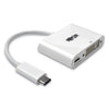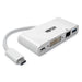 USB 3.1 Gen 1 USB-C to DVI Adapter, USB-A/USB-C PD Charging/Gigabit Ethernet. Expands the potential of your tablet, laptop, Chromebook, MacBook, smartphone or PC’s USB-C or Thunderbolt 3 port. It’s ideal for transmitting video to a large display and powering and charging a PD Charging-compliant mobile device—all at the same time. With a source device that also supports USB DisplayPort Alternate Mode, you can extend video from your primary display to another, duplicate the same video on both displays, or change the second display to your primary. Requires no software, drivers or external power. Connect the reversible USB-C plug to your source device’s USB-C or Thunderbolt 3 port. The fumble-free USB-C plug connects in either direction to ensure fast, easy connection every time. The USB-C Power Delivery (PD) port provides power and charging to the PD Charging-compliant device (such as a MacBook or Chromebook) it is connected to. Connect the device’s AC wall charger to the USB-C PD port, which supports power input up to 20V/3A (60W). Cable Type: USB-C to DVI Adapter; Connector/Port/Interface: DVI-I (Female); RJ45 (Female); USB 3.0 A (Female); USB-C (Female); USB-C (Male); For Device Type: Laptops; Mobile Devices; Connects Devices (From/To): USB to DVI.