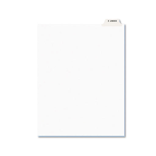 Rip Proof™ reinforced tabs printed on both sides with exhibit letter. Easy-to-read Helvetica bold type stands out. Unpunched for flexibility in bin...
