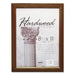 Solid Oak Hardwood Frame, 8.5 x 11, Walnut Finish. Brings the warmth of nature to your office or home. This multipurpose solid hardwood frame is suitable for awards, certificates, documents and photos. The clear unbreakable plastic cover protects the frames contents. Universal design for easy mounting on a wall or built in photo frame easel support allows for desk or counter display. Both wall or desk use can be positioned portrait or landscape to meet your needs. Frame Type: Photo; Frame Material: Solid Oak; Frame Color: Walnut; Color Family: Walnut.