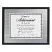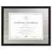 Contemporary Wood Frame, Silver Metal Mat, 11 x 14, 8.5 x 11, Black. Visitors to your home or office will take a second look at whatever you put in this contemporary, black wood frame with a silver metal mat. Your certificate, award or diploma will appear to "float!" Your important document deserves those second looks and this unusual, attractive frame will be the way to do it. Easel back for desktop; also hangs vertically or horizontally. 11 x 14 size is matted to 8 1/2 x 11. Includes a usable certificate. Frame Type: Certificate/Document; Frame Material: Wood; Frame Color: Black; Color Family: Black.