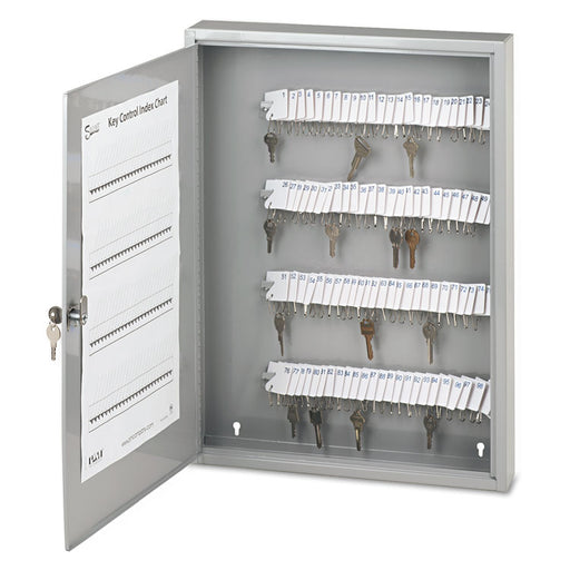 Don't waste any more time and energy searching for lost or misplaced keys. This steel key cabinet holds up to 100 keys. Equipped with a locking doo...
