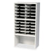 Kwik-File Mailflow-To-Go 2 Tier Corner Sorter w/Riser,20 Pckt,24 x 13.25 x 46.2. Mailroom sorter features large 11 5/8w x 13 1/4d x 2 5/8h fixed compartments that easily accommodate mail volume. Compartment "thumb cuts" speed mail retrieval. Rugged steel construction stands up to the wear and tear of a busy mailroom. Two-Tier Corner Sorter with Riser. Literature Sorter Type: Open Front Mail; Number of Compartments: 20; Compartment Size: 13 1/4" x 2 5/8" x 11 5/8"; Material(s): Steel.