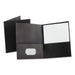 Leatherette Two Pocket Portfolio, 8 1/2" x 11", Black, 10/PK. Holds letter-size paper. Textured leatherette covers. Keep contacts at hand with a die-cut business card holder on the inside cover. Front Cover Color(s): Black; Color Family: Black; Back Cover Color(s): Black; Sheet Size: 8 1/2 x 11.