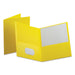 Leatherette Two Pocket Portfolio, 8 1/2" x 11", Yellow, 10/PK. Holds letter-size paper. Textured leatherette covers. Keep contacts at hand with a die-cut business card holder on the inside cover. Front Cover Color(s): Yellow; Color Family: Yellow; Back Cover Color(s): Yellow; Sheet Size: 8 1/2 x 11.
