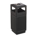 Canmeleon Ash/Trash Receptacle, Square, Polyethylene, 15 gal, Textured Black. Recessed panel design for any first impression areas. High-density polyethylene plastic will not chip or dent. UV inhibitors limit fading in sunlight. Adaptable for anchoring and weighting devices. Uses standard 32" x 44" trash bags. Telescoping base hides bag. Panels feature fluted design with a recessed bottom. Ash Urn with Side Openings—9" sq. stainless steel urn built into lid. No sand required. Four 9 1/2 x 4 1/2" disposal openings. Waste Receptacle Type: Ashtray Waste Bin; Material(s): Polyethylene; Application: Outdoor All-Purpose Waste Disposal; Tobacco Product Waste Collection; Capacity (Volume): 15 gal.