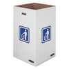 Waste and Recycling Bin, 42 gal, White, 10/Carton. A value option for your recycling and waste disposal needs. Patent-pending 4 point cinch to hold liners in place. Easy 1-2-3 assembly with comfort handles for easy transportation. Bins have optional lids (sold separately) for specific disposal needs. Folds flat for easy storage and reuse. Uses 35-55 Gal. Trash Liners. Waste Receptacle Type: Indoor/Outdoor All-Purpose Waste Bin; Material(s): Corrugated Paper; Application: Indoor/Outdoor Recycling; Indoor/Outdoor All-Purpose Waste Disposal; Capacity (Volume): 42 gal.