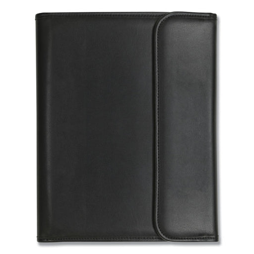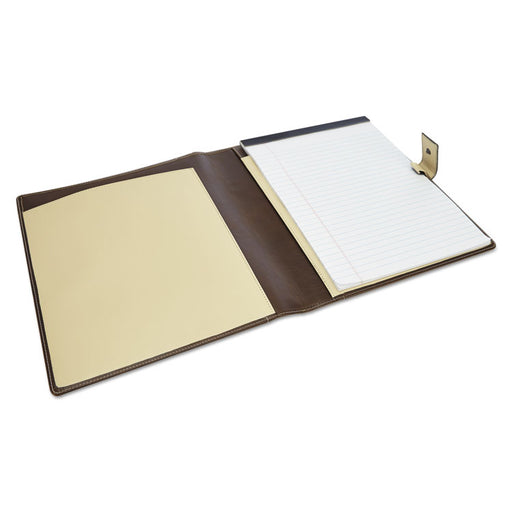 Textured leather-feel pad holder with button closure. Can accommodate standard letter-size pads and notebooks. Side pocket for document storage. In...