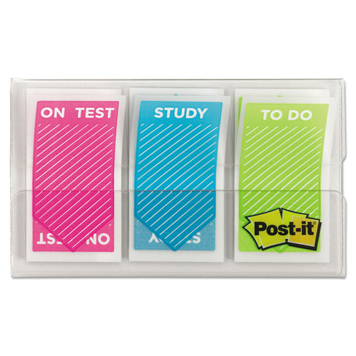Post-it® 1" Wide Flags in a variety of Bright colors feature the messages: "Study," "On Test," and "To Do," making them ideal for marking textbooks...