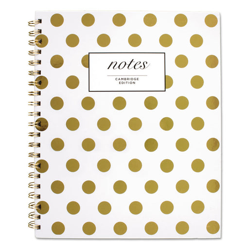 Durable hardcover notebook has a clean, white cover with a gold polka dot pattern—perfect for your most stylish friend. Ruled pages keep business n...
